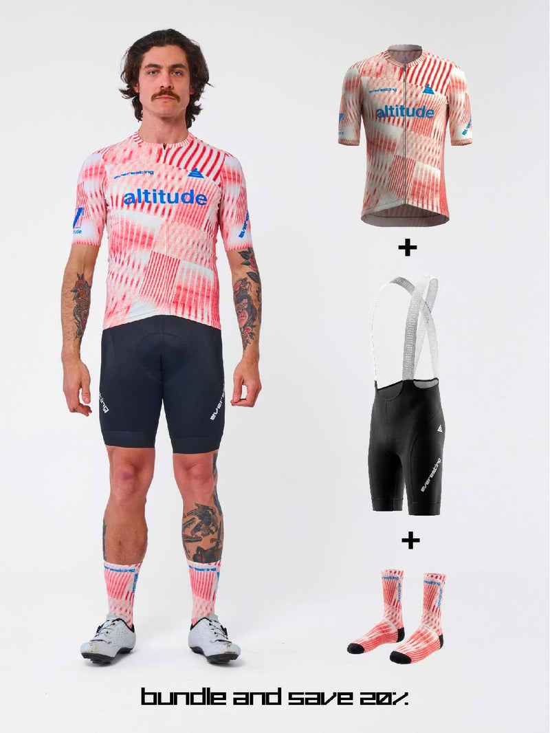 The Altitude collection transforms the Everesting challenge into an astronomical narrative. Across three fundamental states, these pieces capture the metamorphosis of both the landscape and the human psyche during the ascent, merging avant-garde design with the trajectory of a body moving through space.